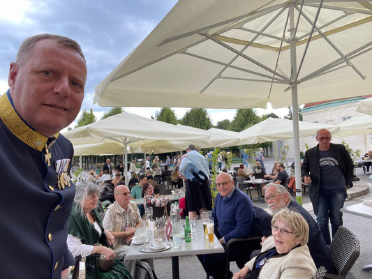 Ein Highlight dieses besonderen Tages war der Besuch unseres guten Freundes, Udo Glatthaar, Oberbürgermeister von Bad Mergentheim. Zunächst ließ er es sich nicht nehmen, das hervorragende Konzert der Original Hoch- und Deutschmeister Kapelle vor der eindrucksvollen Kulisse des Schloss Belvedere gemeinsam mit uns zu genießen.